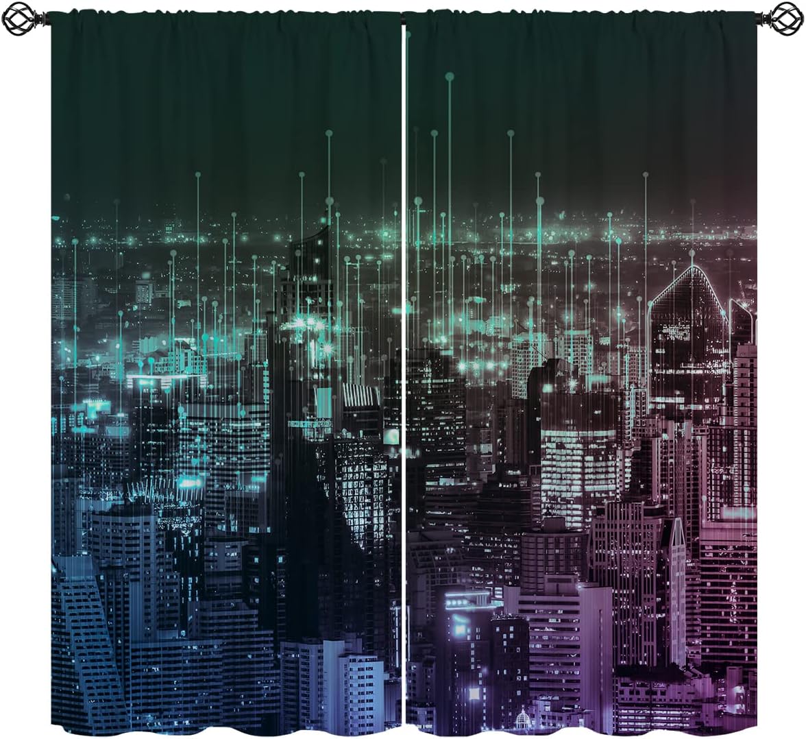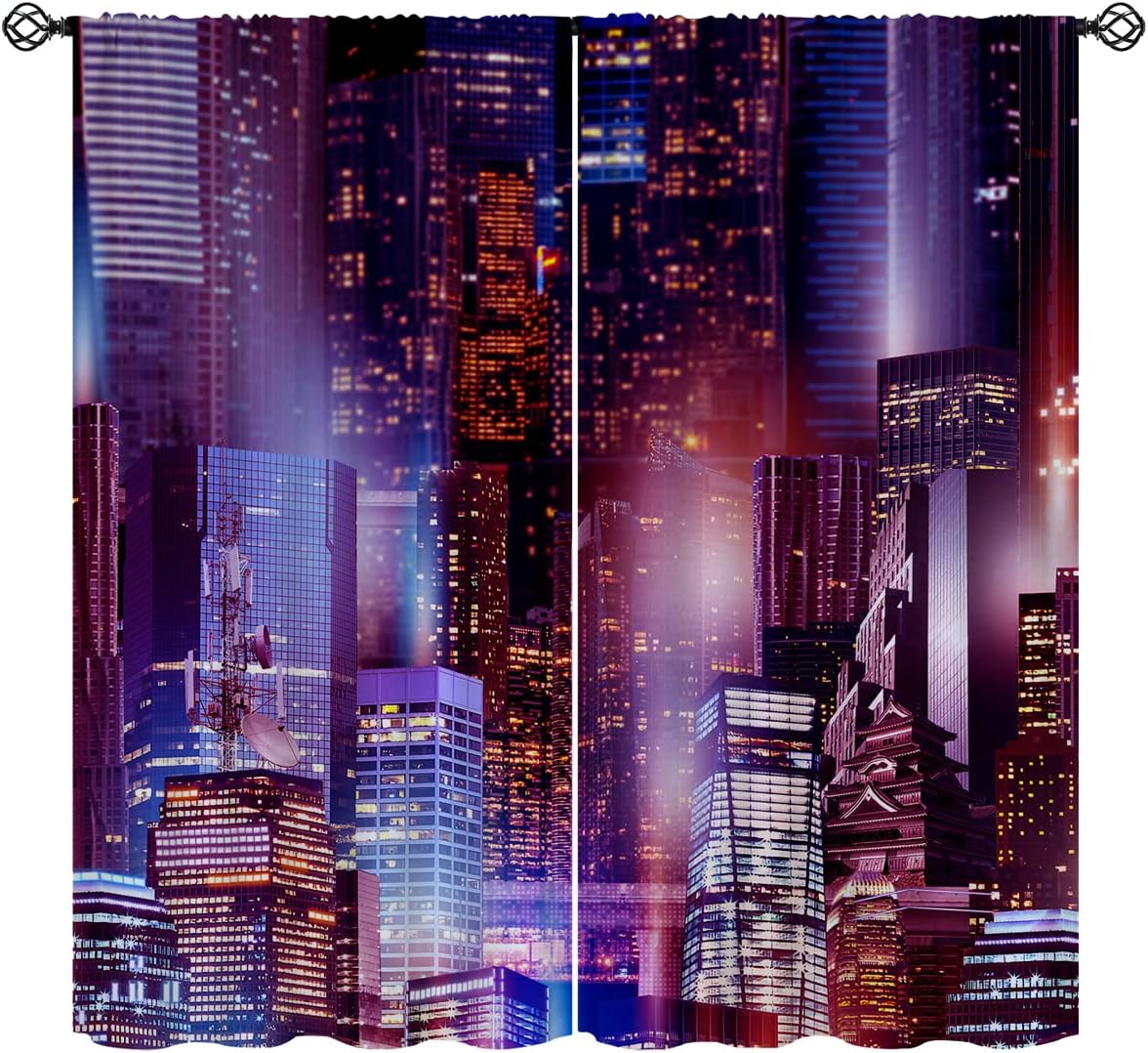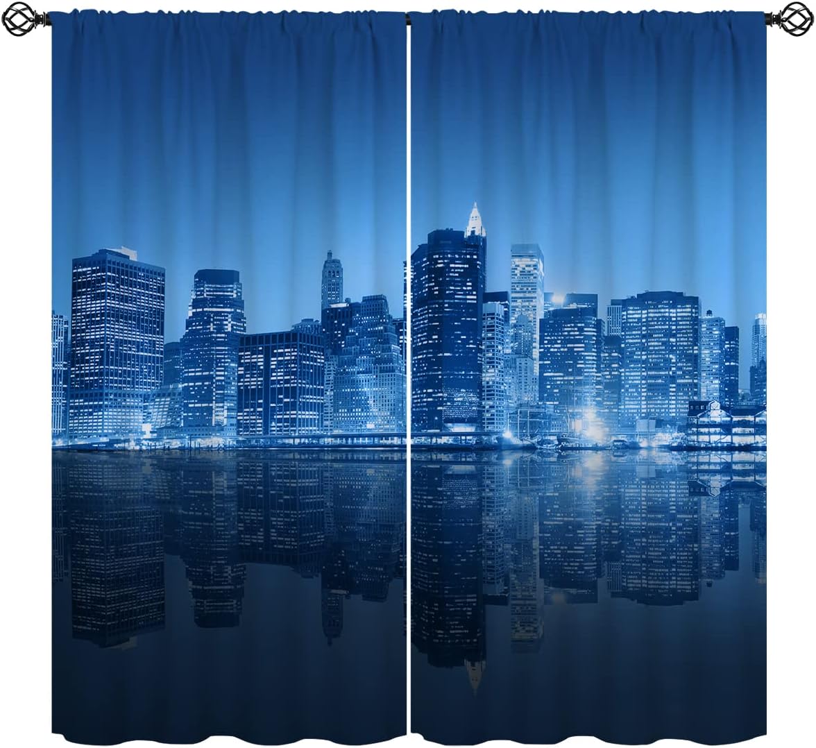 These print curtains are perfect for Living room, bedroom, kids room, kitchen, yard, patio, parlor, sliding door with Hong Kong City,Skyscrapers 3D Print Night Blue pattern.- Unique design:· Save energy costs by insulating against heat and cold.· Reduce noises from busy streets and high-traffic areas.· Protect furniture from sun damage and fading.· Provides complete privacy when needed· Perfect for any bedroom, office kids room and living room.- Package Included:· Blackout window curtains 2 Pcs set ( two panels).- Material:· Our Blackout Curtain Liners are crafted from a durable soft and thick triple weaved blackout fabric which can block out sunlight and UV rays. The darker color of the fabric, the more light it can block.- Easy Care Instructions:· Machine washable in cold water· Do not bleach.· tumble dry on low· low temperature ironing- Notes:· For your curtains to be more perfect, please choose a size 5-10 Inch larger than the actual window width.· here may be slight differences in colors on different displays. If you have any questions about the product, please feel free to contact us.